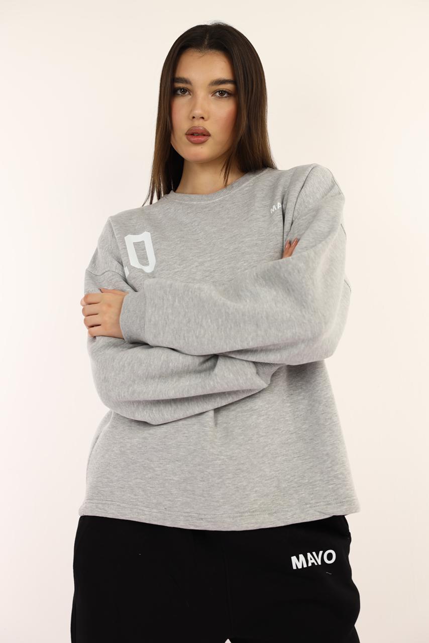 سويت شيرت مطبوع باللون الرمادي شانيه بتصميم عصري وكاجوال، مصنوع من خامة قطن مخلوط تقيلة توفر دفء وراحة طوال اليوم. الطباعة عالية الجودة تضيف لمسة مميزة وتدوم مع الاستخدام والغسيل.