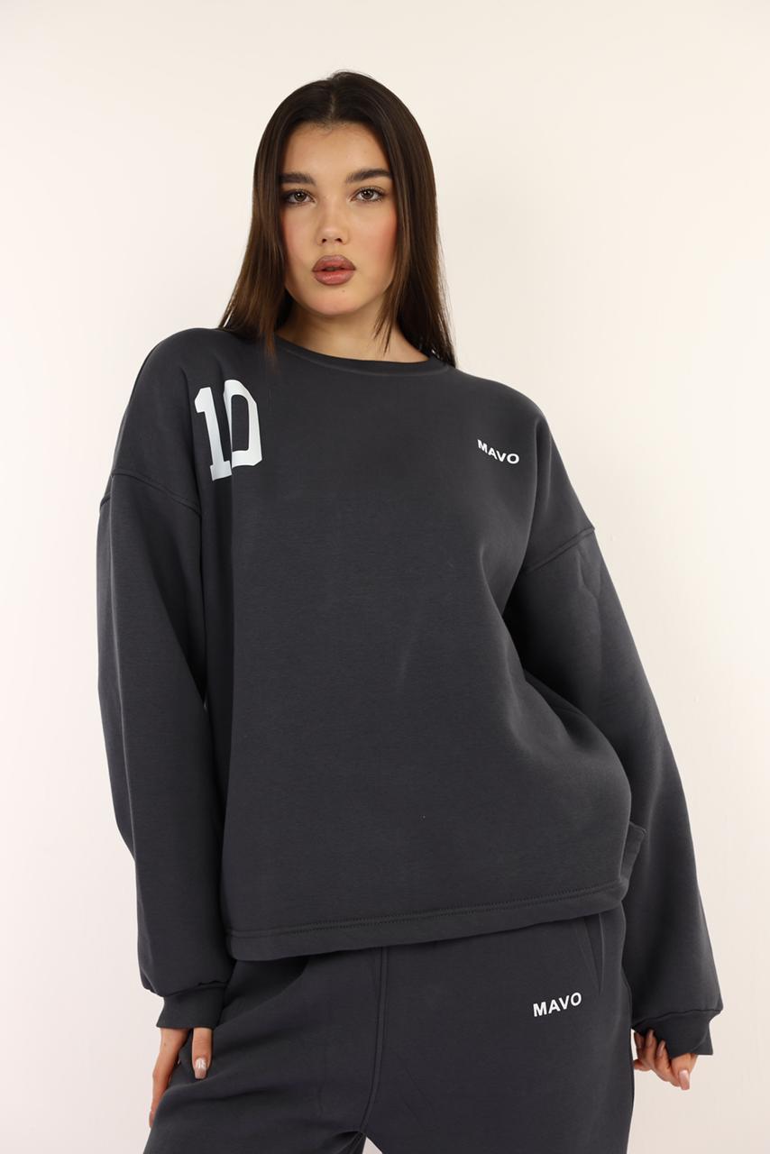 سويت شيرت مطبوع باللون الرمادي الغامق بتصميم عصري وكاجوال، مصنوع من خامة قطن مخلوط تقيلة توفر دفء وراحة طوال اليوم. الطباعة عالية الجودة تمنح مظهرًا أنيقًا يدوم مع الاستخدام والغسيل.